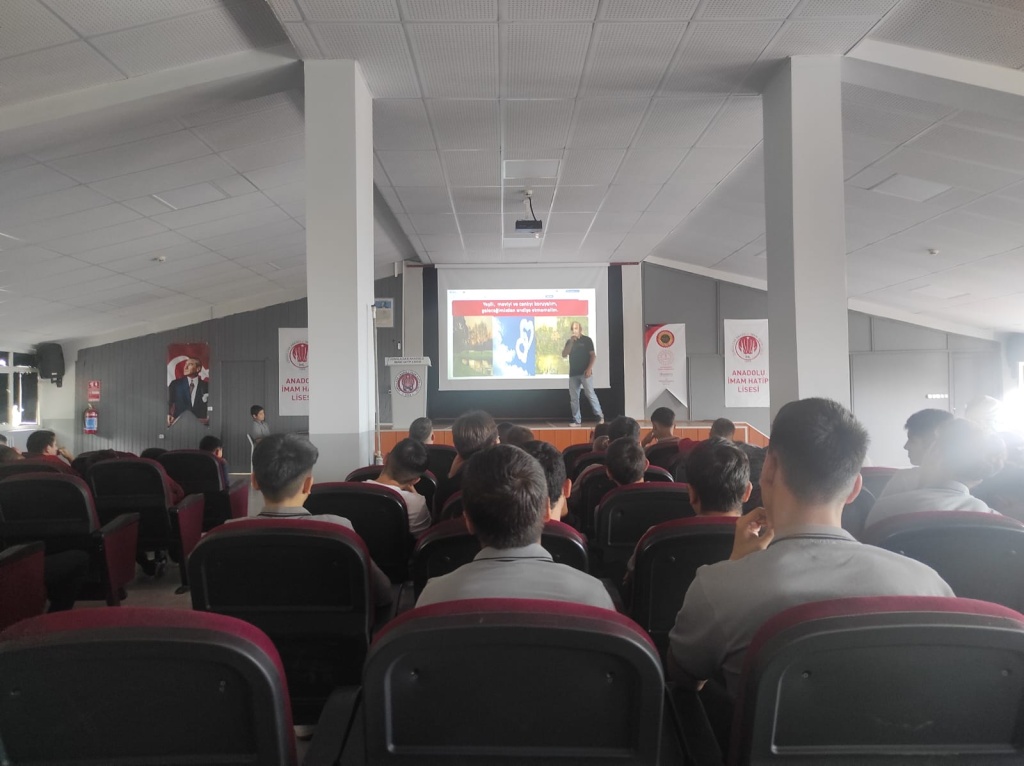Okulumuzda 2025-2026 eğitim-öğretim yılı süresince ülkenin her bölgesinde kapsamlı çevre ve sürdürülebilirlik faaliyetlerinin uygulanması hedefiyle, "Yeşil Vatan-Benim Okulum Geleceğe Çare" etkinlikleri kapsamında ders yılının ilk dersi “Yeşil Vatan” oldu., Temiz hava için fidan dikmen önemi ve yaşantımız için toprağın gerekliliği hakkında farkındalık oluşturmak amacıyla okulumuz Fen Bilgisi Öğretmeni Mustafa KAN öğrenci ,öğretmen ve velilerimize seminer verdi.